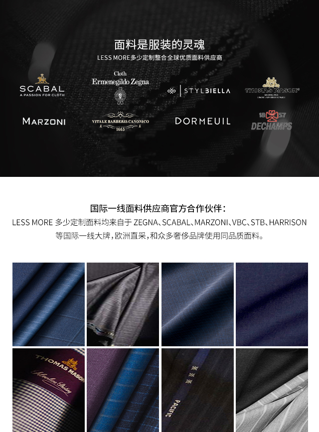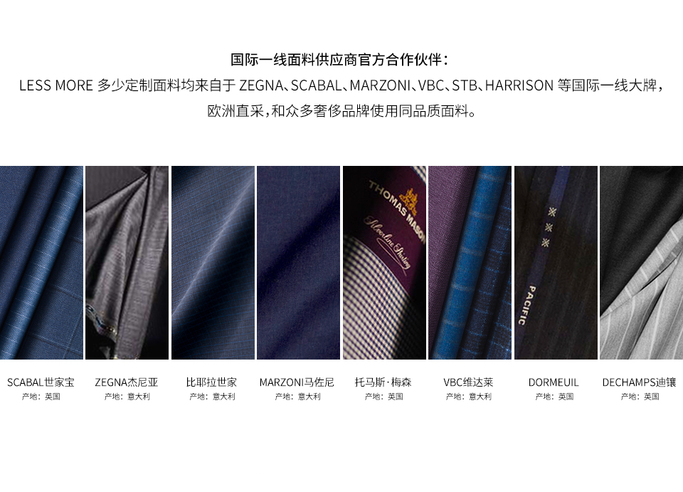 LESS MORE 多少定制是能夠提供男士全品類定制產(chǎn)品的生活方式品牌,對(duì)于中國(guó)商務(wù)男士來說,定制是對(duì)西裝最認(rèn)真的態(tài)度。